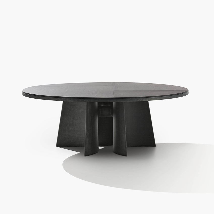 Lou Dining reinterprets CASSINA’s architectural minimalism with natural travertine slabs and slim oak legs. Concealed drawers beneath its smooth surface offer discreet storage, while hand-finished edges highlight the organic beauty of raw materials in contemporary design.